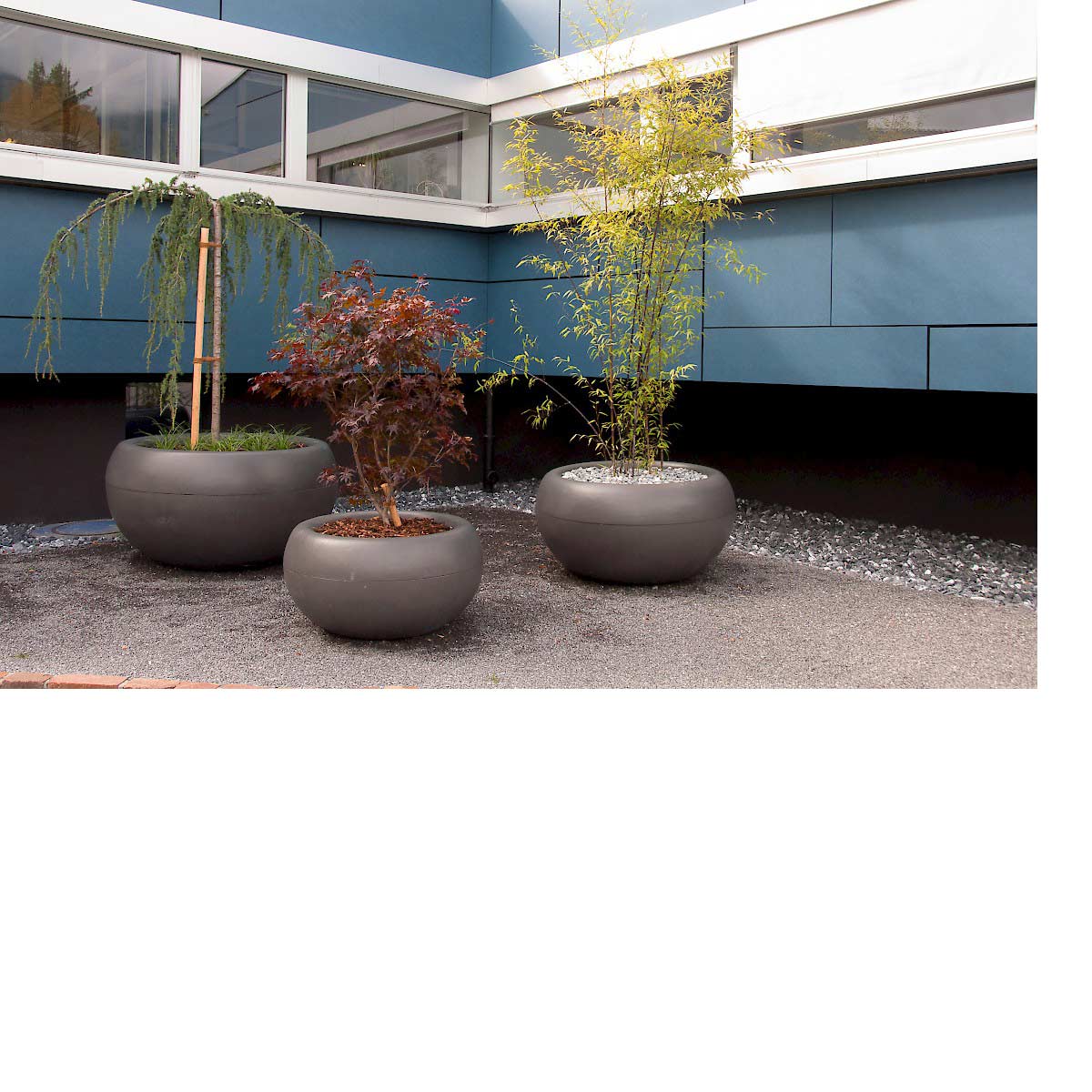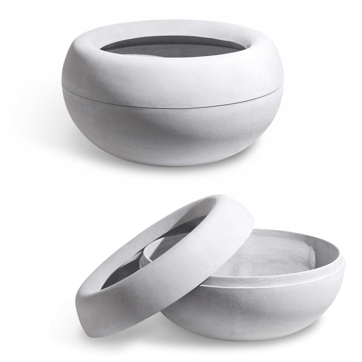 Products are made of natural, durable, recyclable, lightweight fiber cement. Manufactured in Switzerland. Each product is hand formed and signed by individual artisans. Modern design in a timeless and enduring material. These outdoor pieces possess an exceptional strength-to-weight ratio, making them suitable for a wide range of environments‚ from weight-restricted roof terraces to interiors, to public spaces. Even the largest sizes are easy to handle.