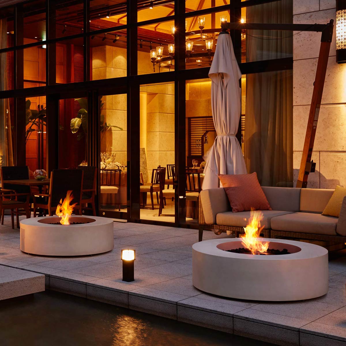 Thoughtfully designed and expertly crafted, the Ark 40 Fire Pit Table is an elegant addition to outdoor lounging areas, small patios, hospitality spaces, and intimate seating arrangements.