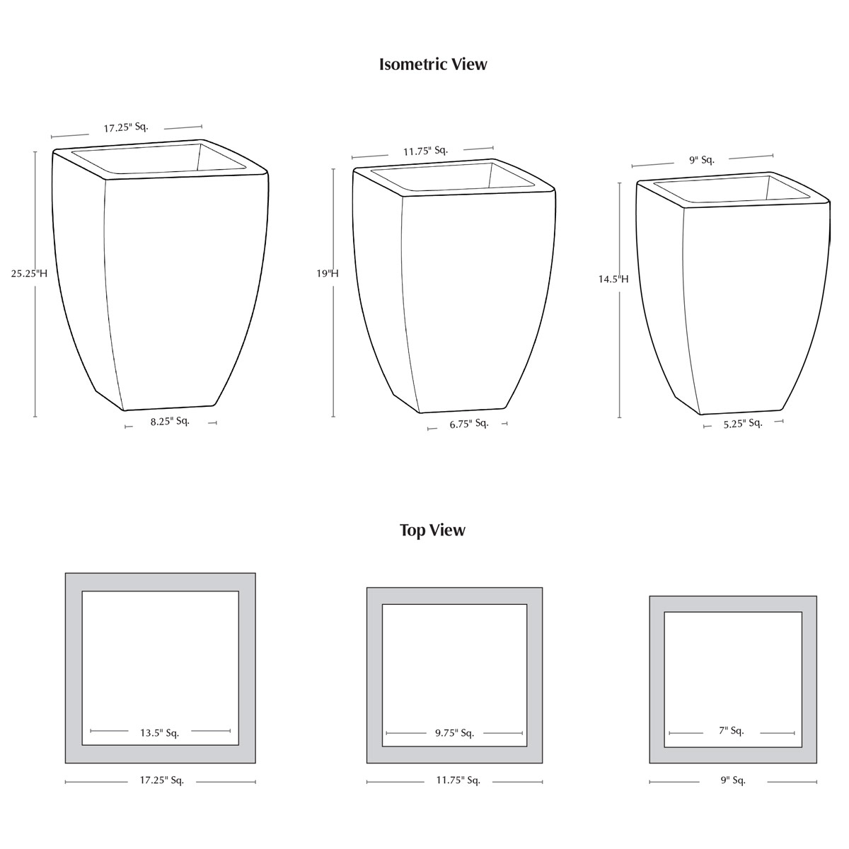 | Size | Set of 3 17.25″ x 25.25″ H | 97 lbs 11.75″ x 17.75″ H | 42 lbs 9″ x 13.75″ H | 21 lbs |