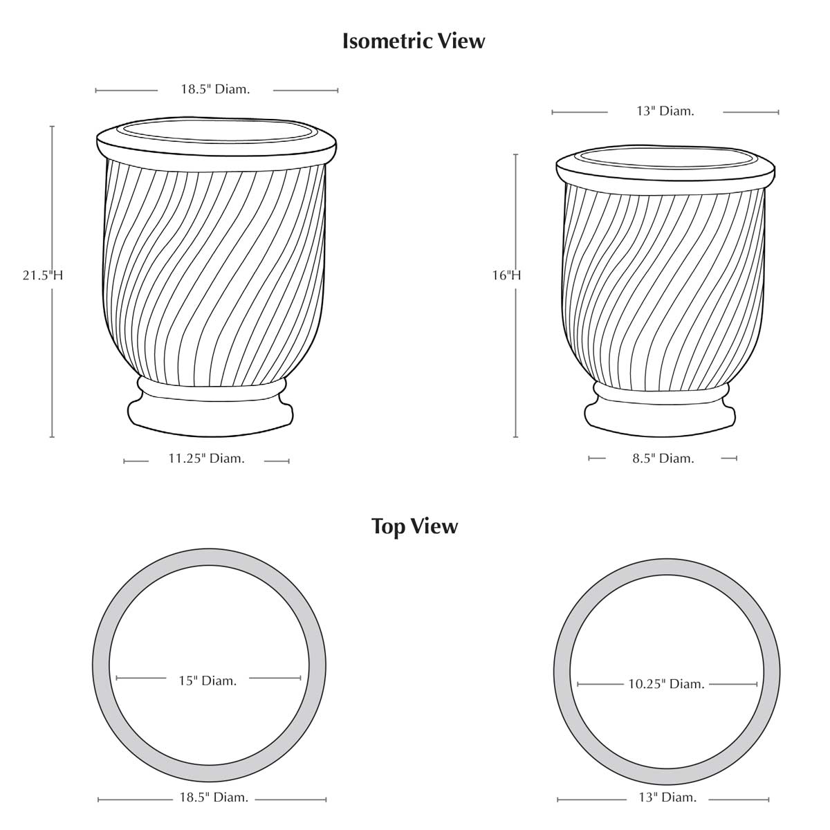 | Size | Set of 2 18.5"DIA x 21.5"H | 59 lbs 13"DIA x 16"H | 28 lbs |