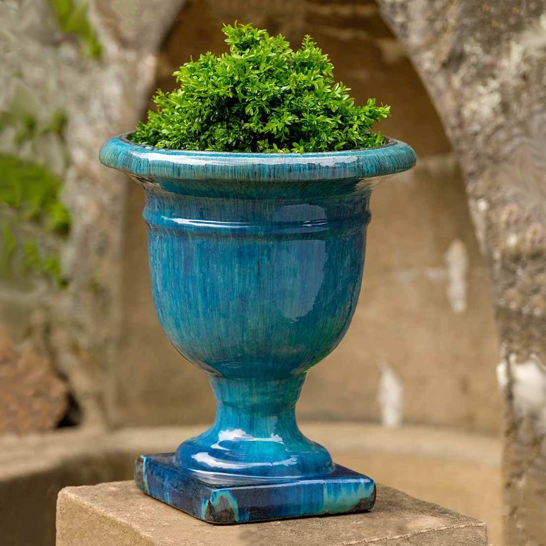 The artisanal process and traditional kilns used to manufacture our handmade and hand-glazed containers create planters of unique beauty and character. This traditional craftsmanship offers a rich variety of textures, colors and finishes which will enhance any contemporary or traditional design project. Additionally, most of our outdoor glazed pottery can be used in the design of custom water features. For quality control, these natural clay planters are rigorously tested in freeze-thaw conditions. Our Glazed and Terra Cotta pottery is appropriate for use indoors and outdoors with proper planting and care in regions where freeze-thaw cycles exist.