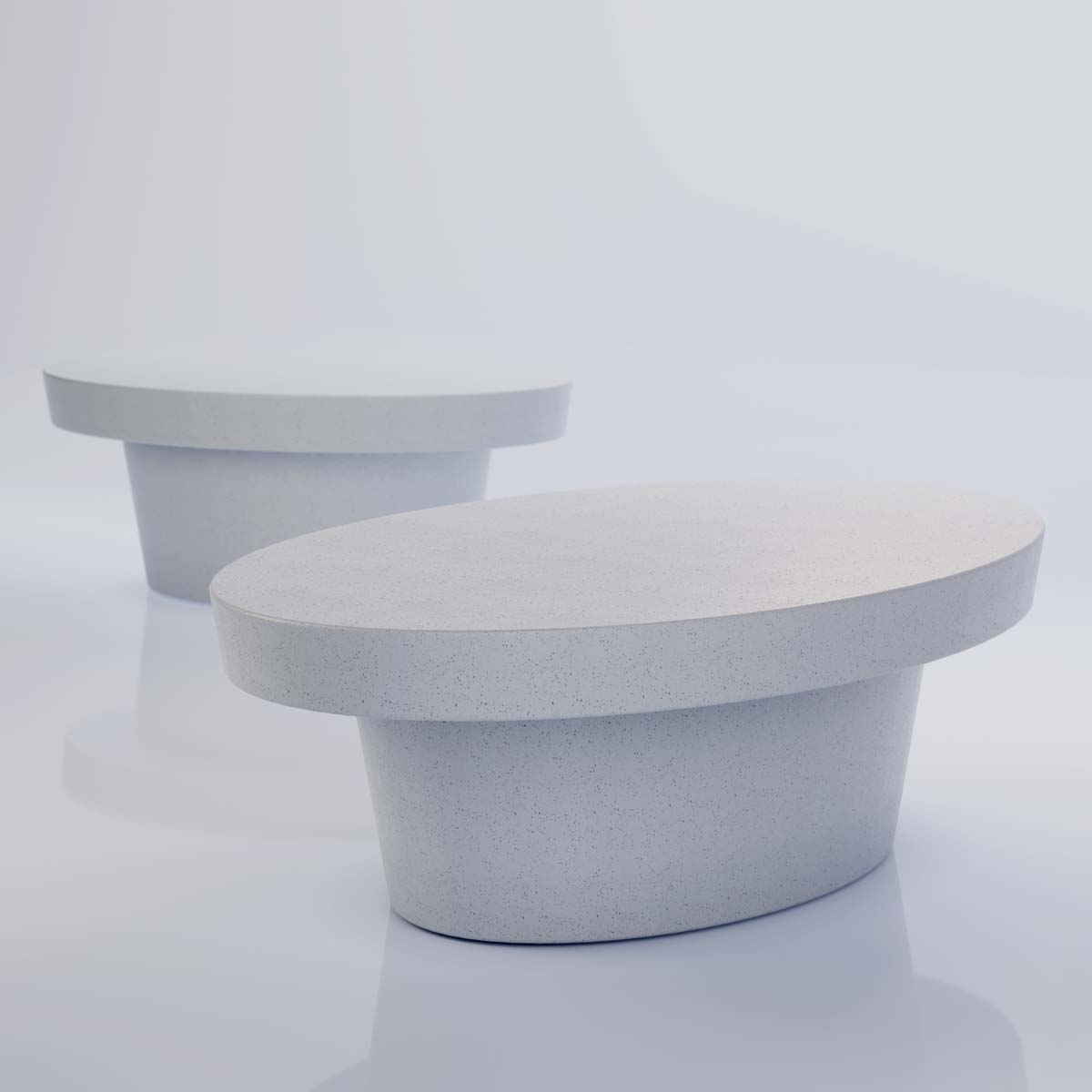 Available in three sizes, our Cashi Coffee Tables make great additions to your outdoor living and entertaining area. Their simple rounded forms are crafted in cement-look fiberglass resin and aggregate, and come in 5 finish options as well as Oval Cashi Coffee Tables.