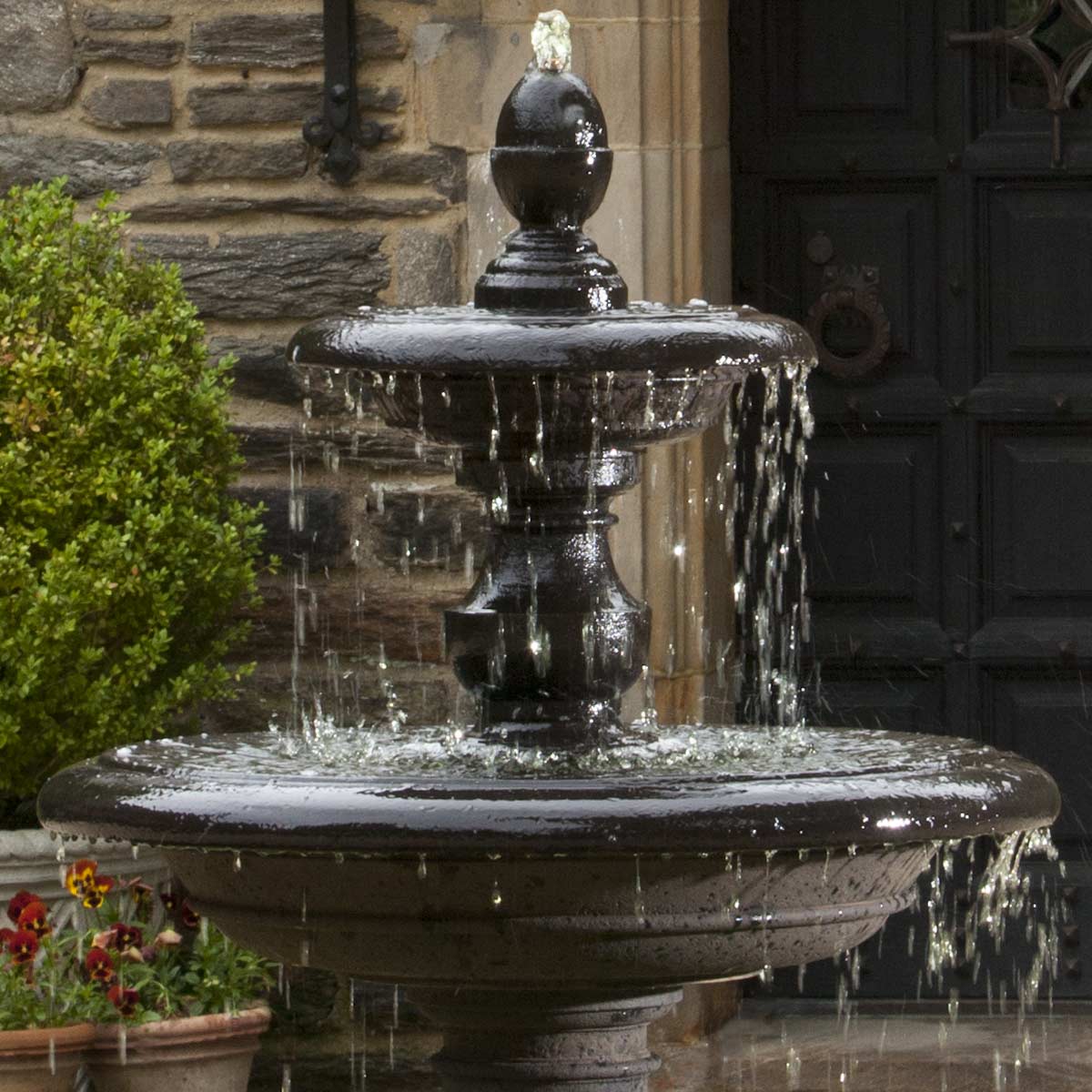 - No plumbing is needed; water recirculates within the fountain