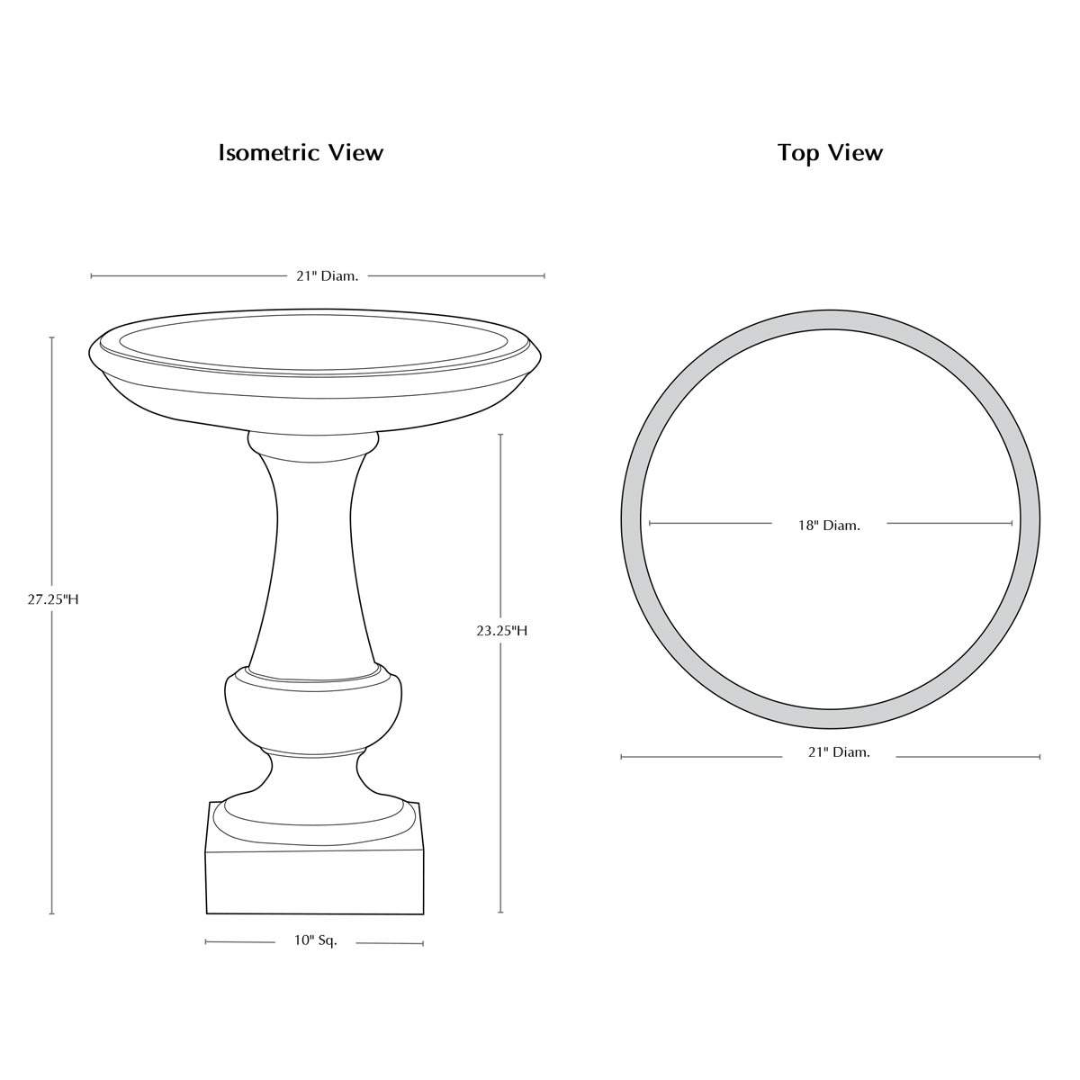 | Base Dimension | 10" Sq |