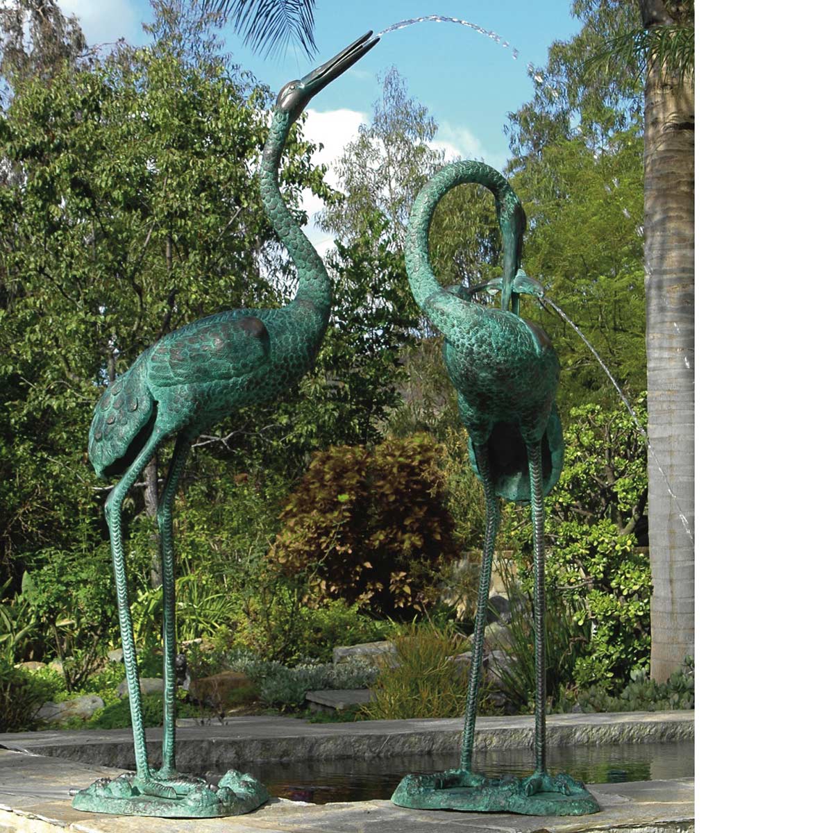 The crane is one of nature’s most spectacular creations. The crane pair statue is the counterpart of the Crane Pair Fountain, also available in our fountains section. Add this graceful solid brass statue to your outdoor space and add instant elegance. Made from solid brass, this statue will develop a verdigris patina due to the chemical reaction of moisture on brass.
