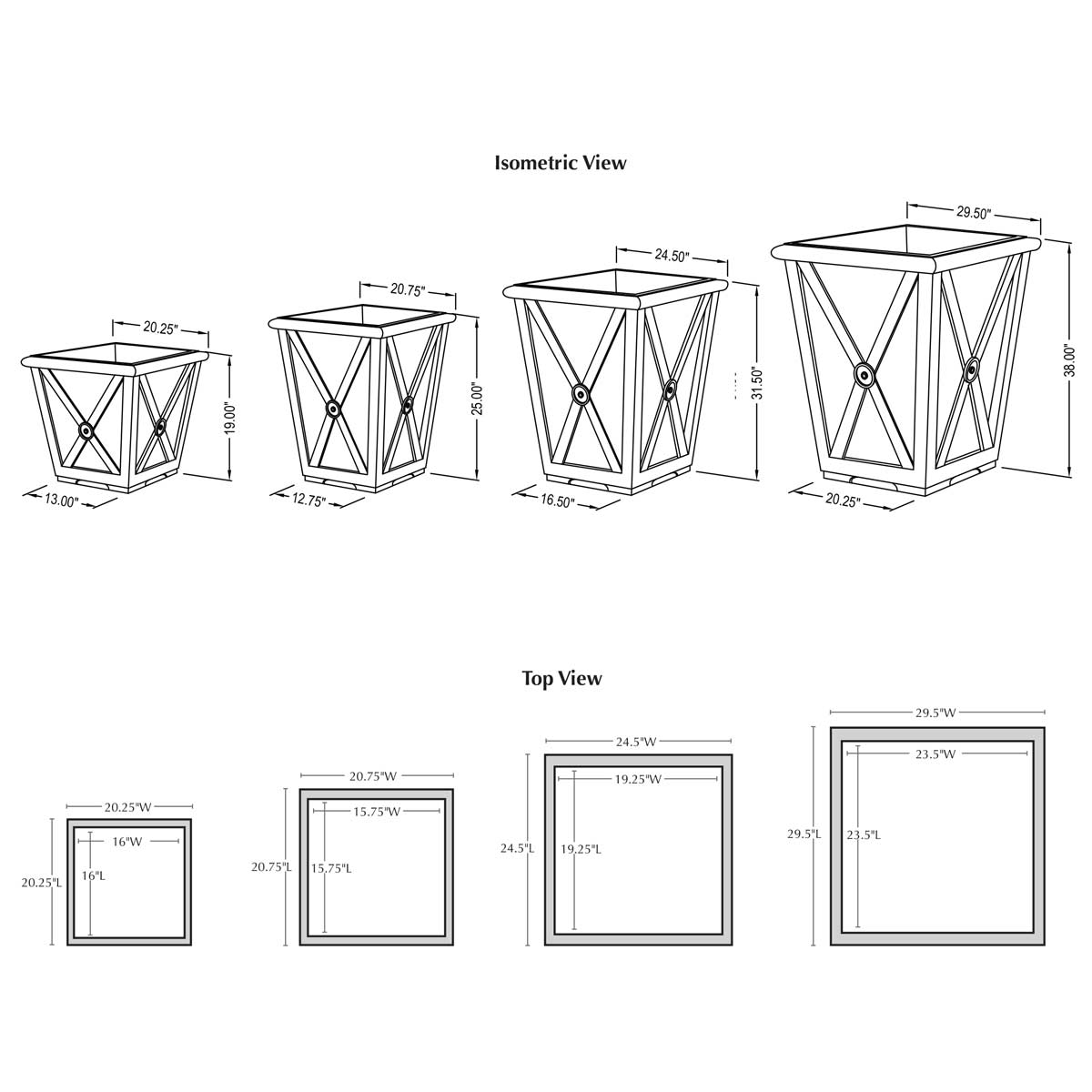 A structured look with linear detailing ensures our Directoire Planters add form and function to your outdoor patio space. These square-tapered garden containers come in four sizes and are ideal for medium to deep-rooting shrubs or flowers. Choose from a variety of cast stone finish options, as well as the smaller Directoire Terrace Planters.