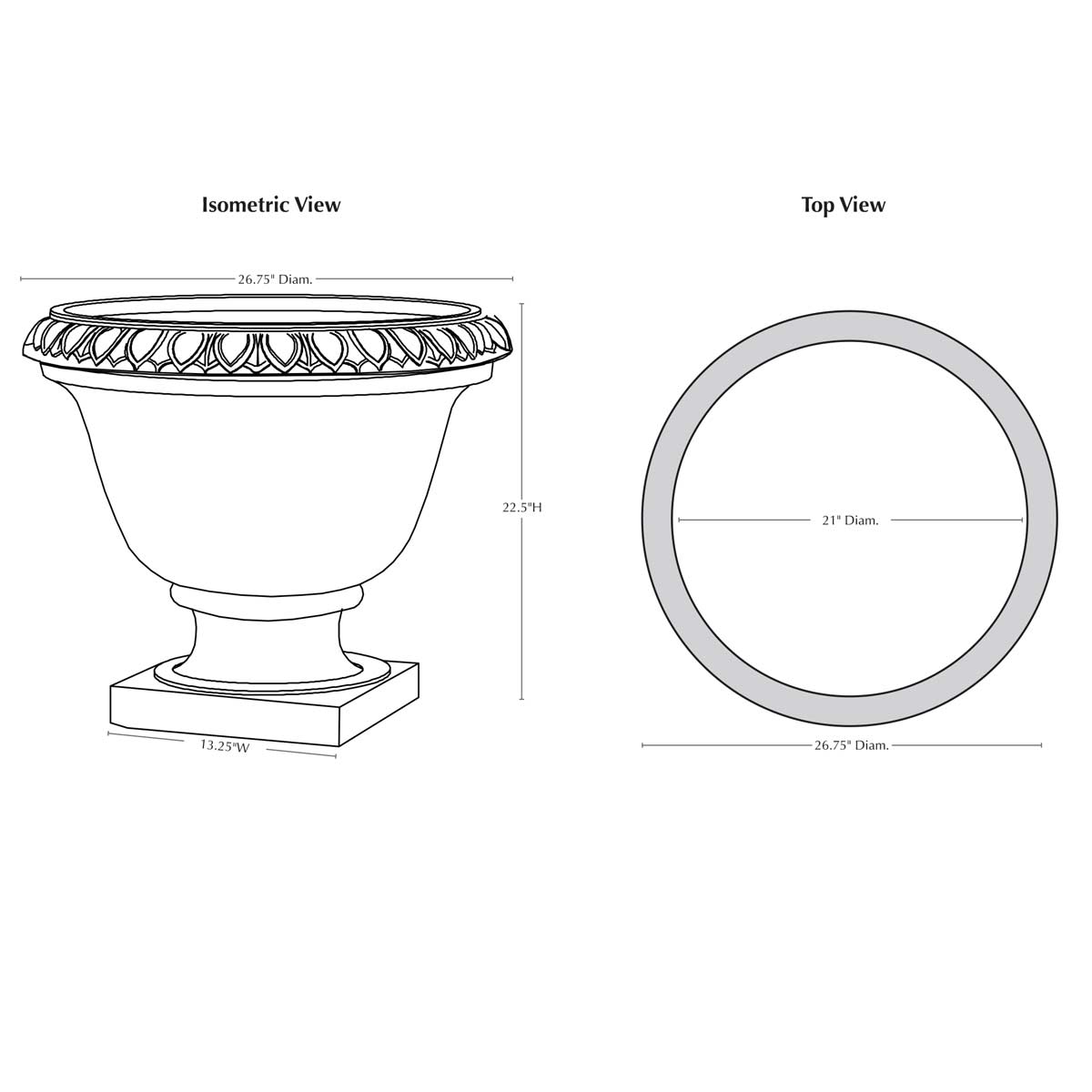 | Base Dimension | 13.25" Sq |