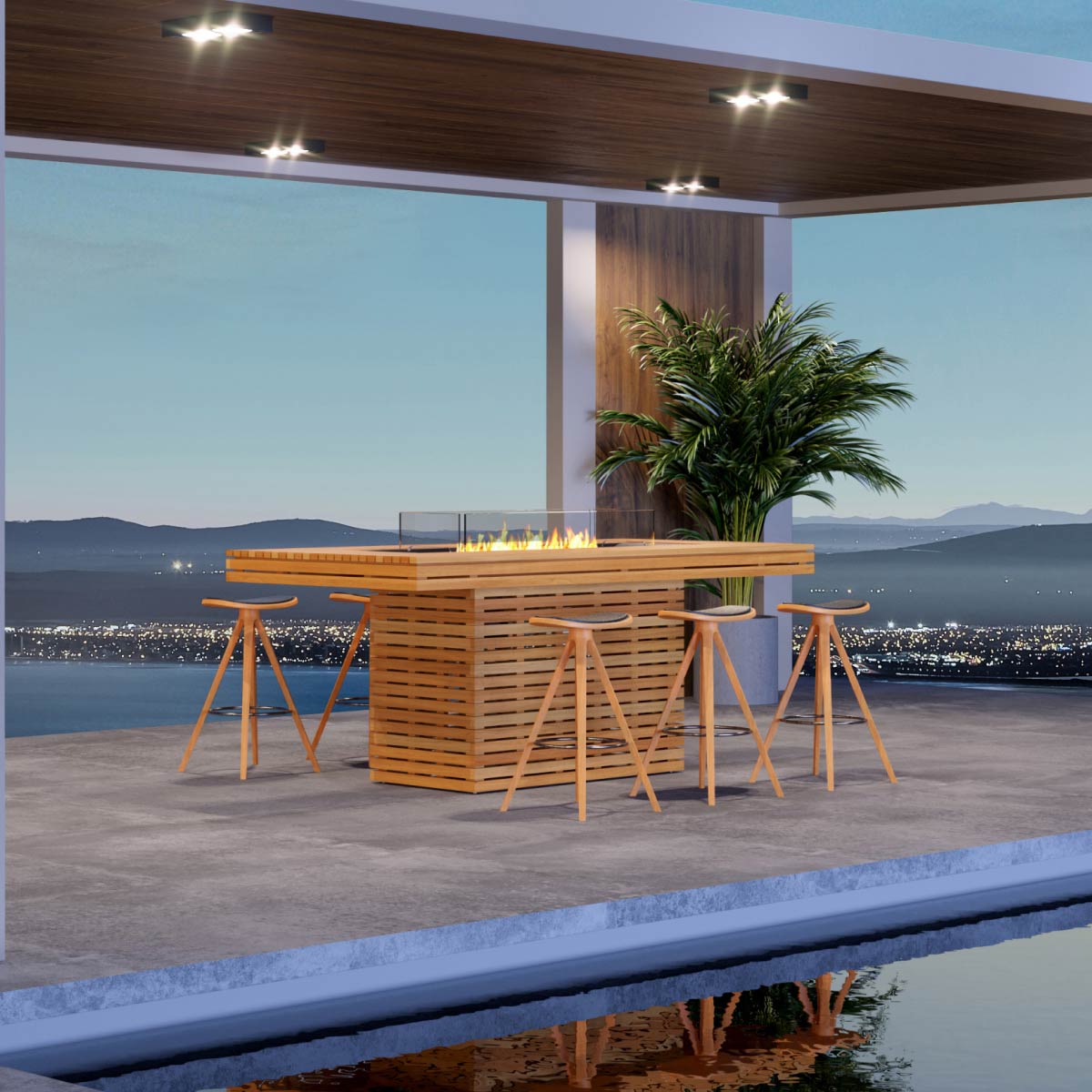 The Gin 90 centerpiece is engineered with clean architectural lines and a generous 89-inch length, offering ample room for guests to stand or sit comfortably around the flame. Its wide edges create practical space for plates, drinks, and décor, making it a centerpiece for patio bars, rooftop lounges, commercial spaces, and residential entertaining areas.