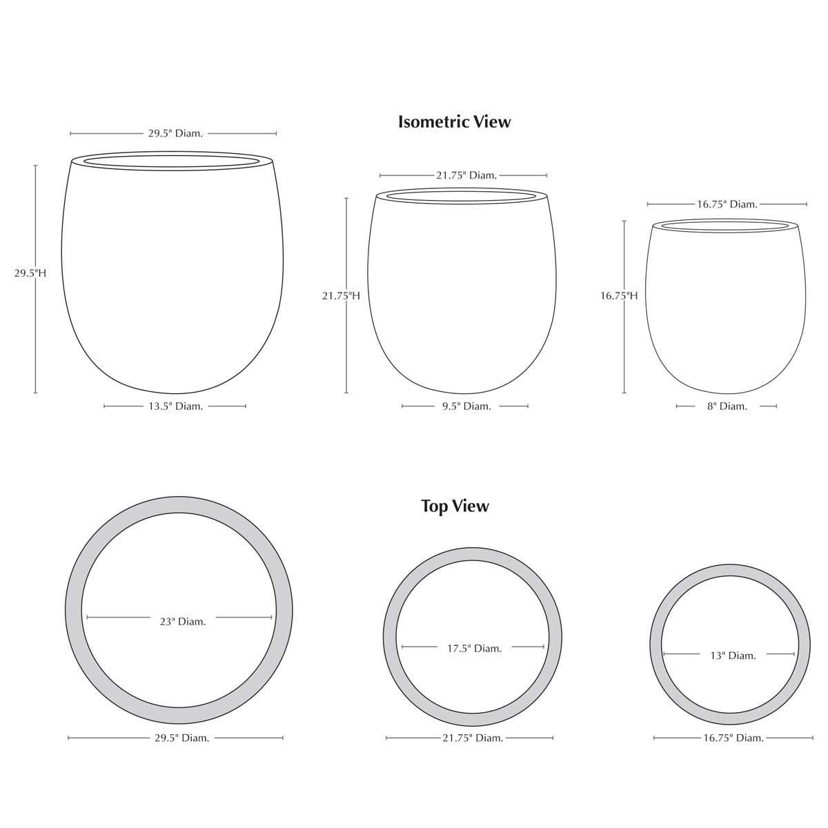 Reminiscent of an egg shell, our Guilford Planters come in three sizes and fiberglass finish options, as well as a set. The clean form of these modern planters is both durable and lightweight, and works well with a range of foliage, shrubs or flowers. Place one alone or as a group for a stylish look in your garden patio or outdoor space.