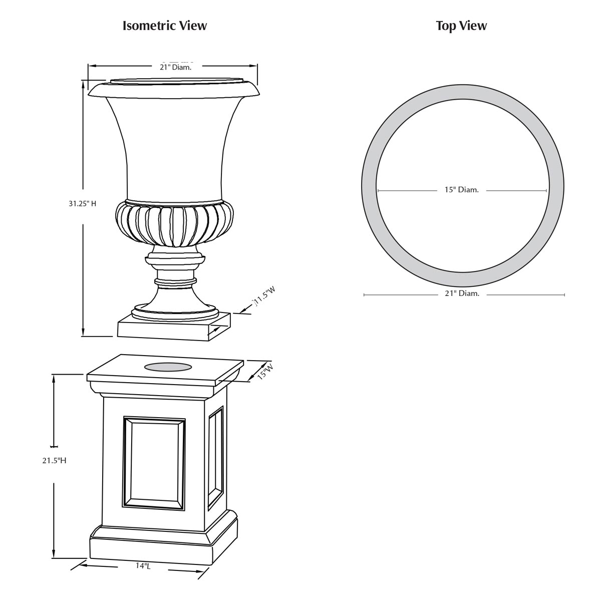 | Base Dimension | 14" Sq. |