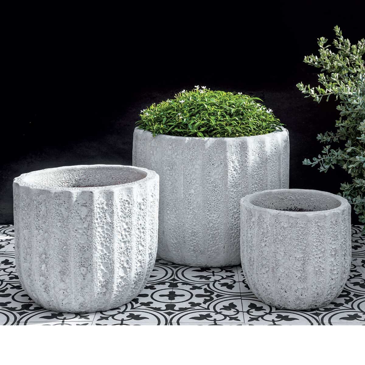 The Maris Planters are handcrafted from terracotta and have a vertical rib patterning in two texture finishes. Offering a unique look for your outdoor space, this set of three garden containers works well for small to medium plants and is also available as the Tall Maris Planter set.