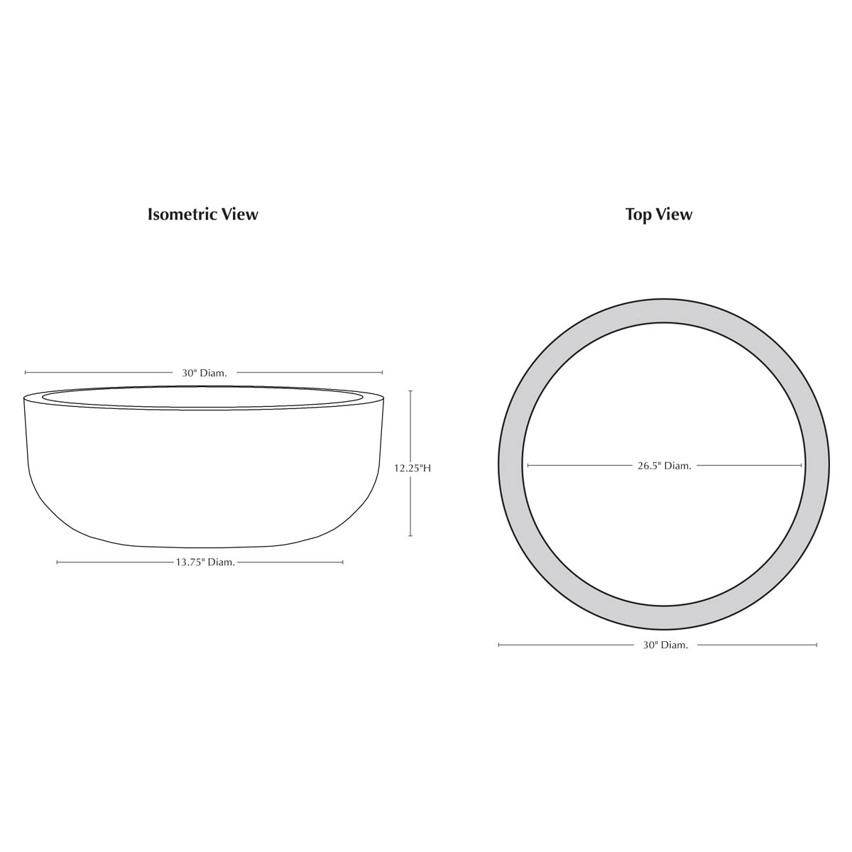 | Size | 30"DIA x 12.25"H | 172 lbs |