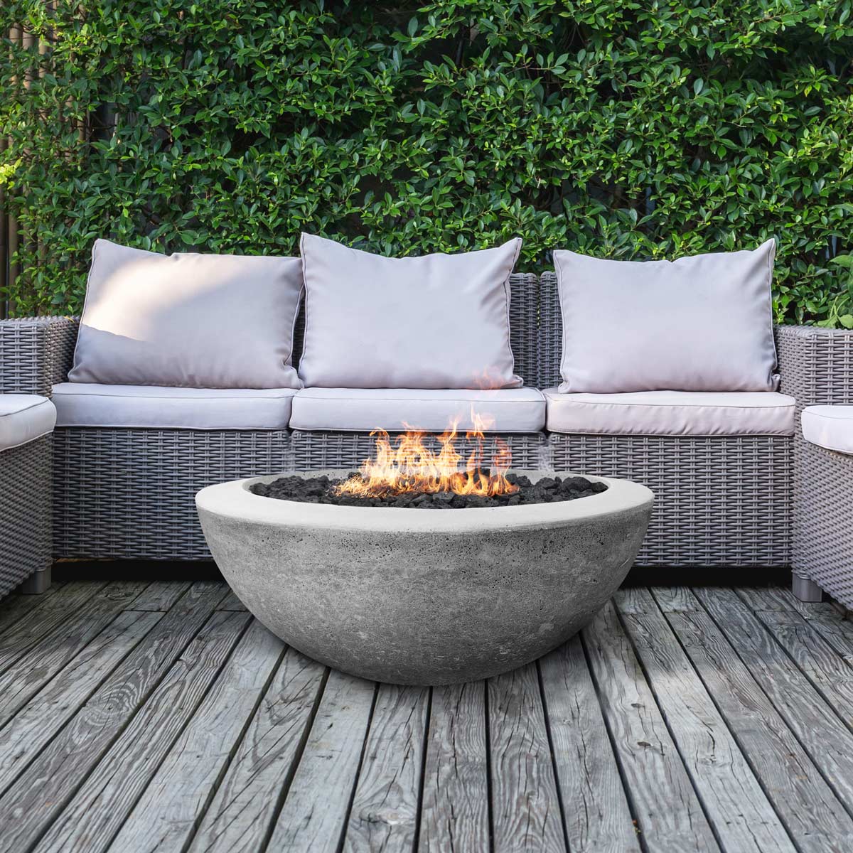 - Firepits are made from Glass Fiber Reinforced Concrete(GFRC), for considerable weight savings over traditional cast stone planters, without compromising on durability.