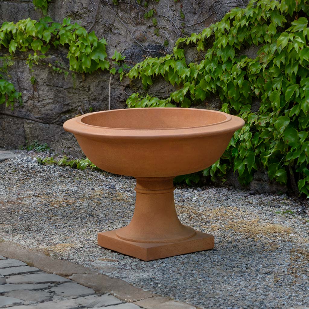 With a smooth cast stone finish that highlights its simple silhouette, the Notting Hill Urn exudes refined elegance. This shallow bowl planter, set on an elevated pedestal base, is available in two diameter sizes and adds structure to outdoor spaces, especially when paired to flank an entryway.