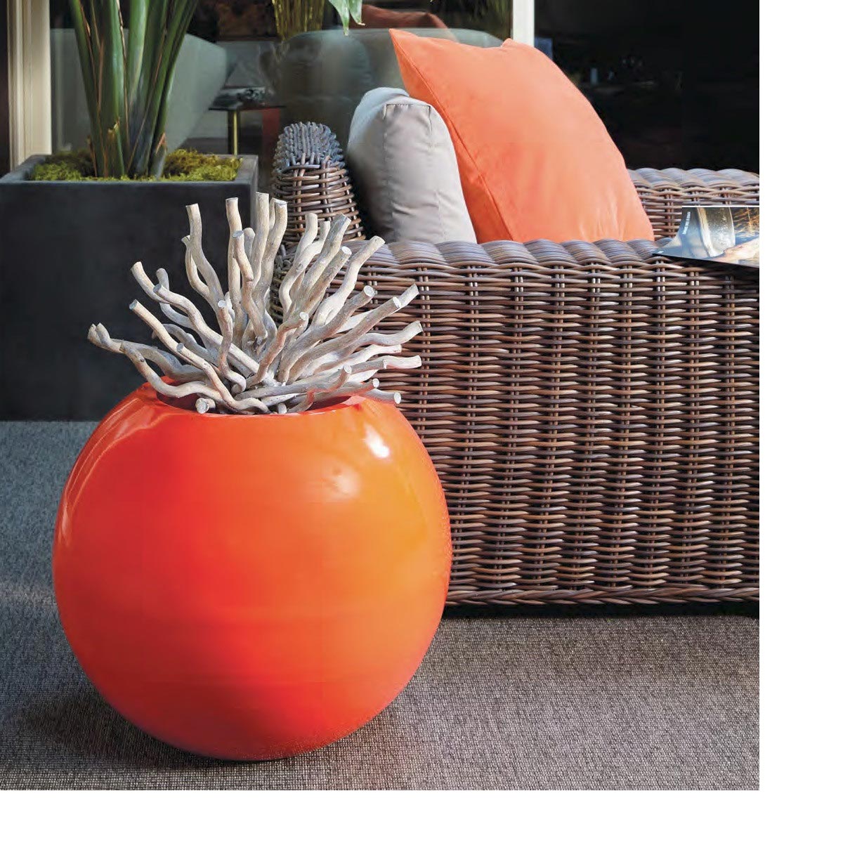 Ideal for patios, gardens, or sophisticated outdoor living spaces, the Orb Planter seamlessly complements contemporary landscapes with its timeless, versatile style. Its minimalist design allows it to adapt to various settings, whether used as a standalone focal point or paired with other elements. For a truly striking visual impact, pair the Orb Planter with a Natural Gas Fire Bowl to create a dramatic contrast between the organic greenery and the sleek fire feature. This combination defines the area while adding depth and texture to your outdoor décor.