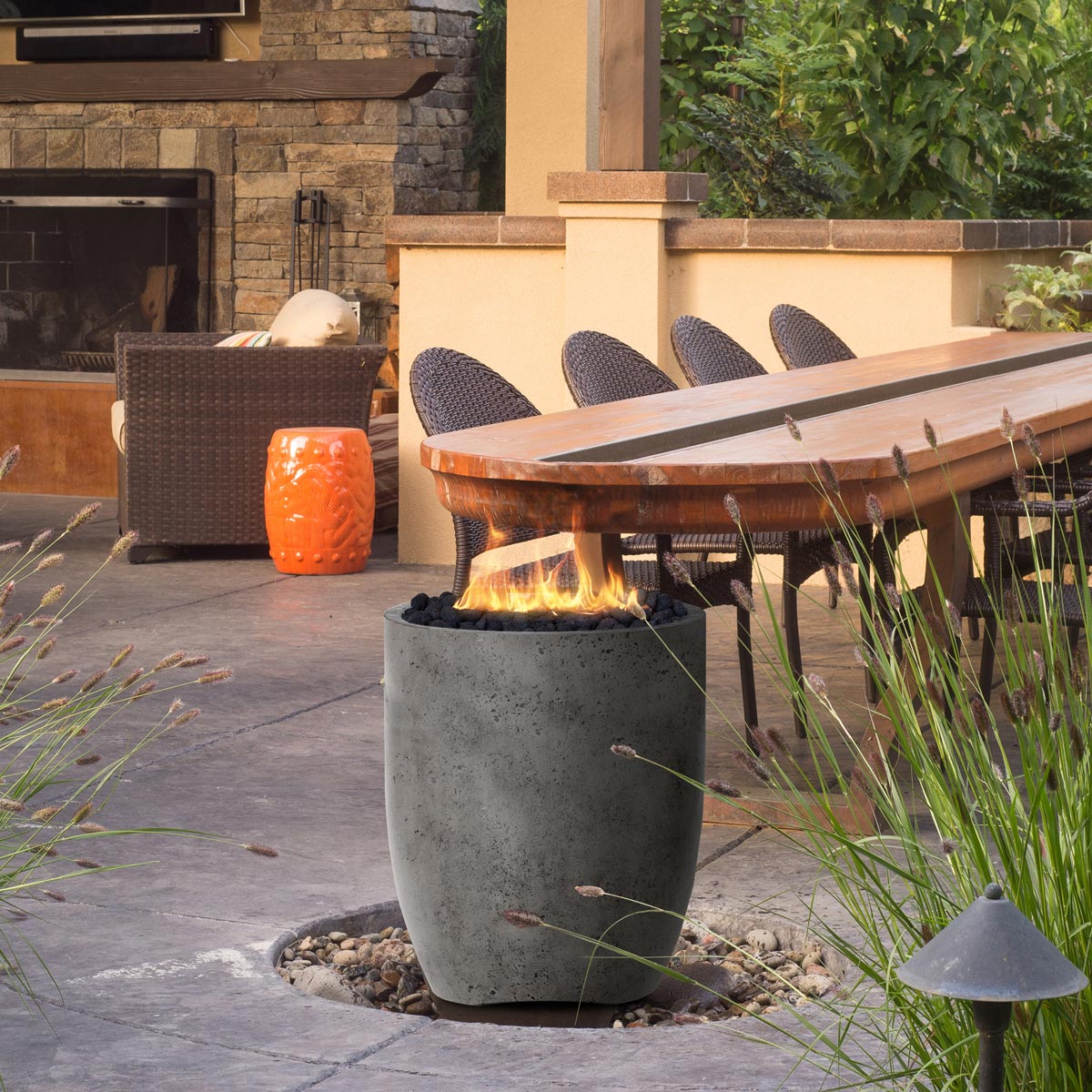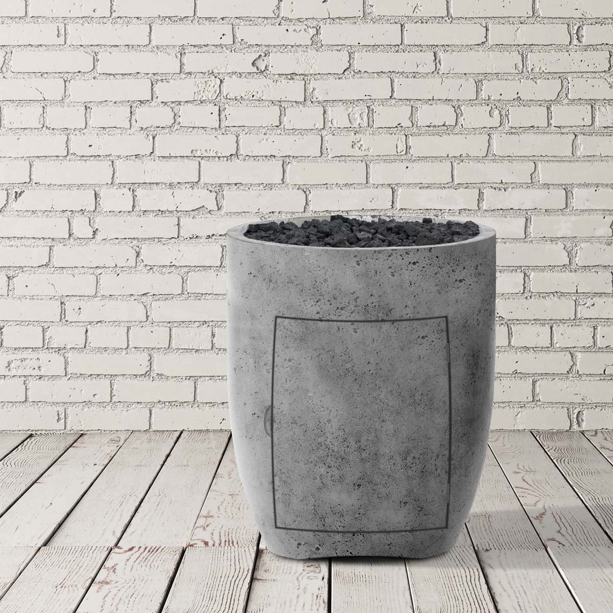 The Pentola 3 Fire Pit delivers warmth and ambiance for modern outdoor spaces. Its compact size, with internal propane unit enclosure, comes in five contemporary colors to suit your decor. These GFRC fire features are hand-crafted using a custom patina finishing process that guarantees each piece is a one-of-a-kind creation with subtle variation. Propane tank not included.
