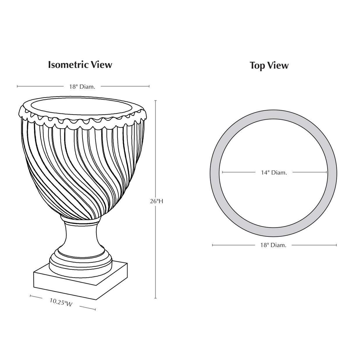 Offering an element of the unexpected, the Ravenna Urn has spiral twist patterning that sets this planter apart. Its chalice form is crafted from cast stone, in a variety of finish options, and creates a unique backdrop against dark or draping foliage.