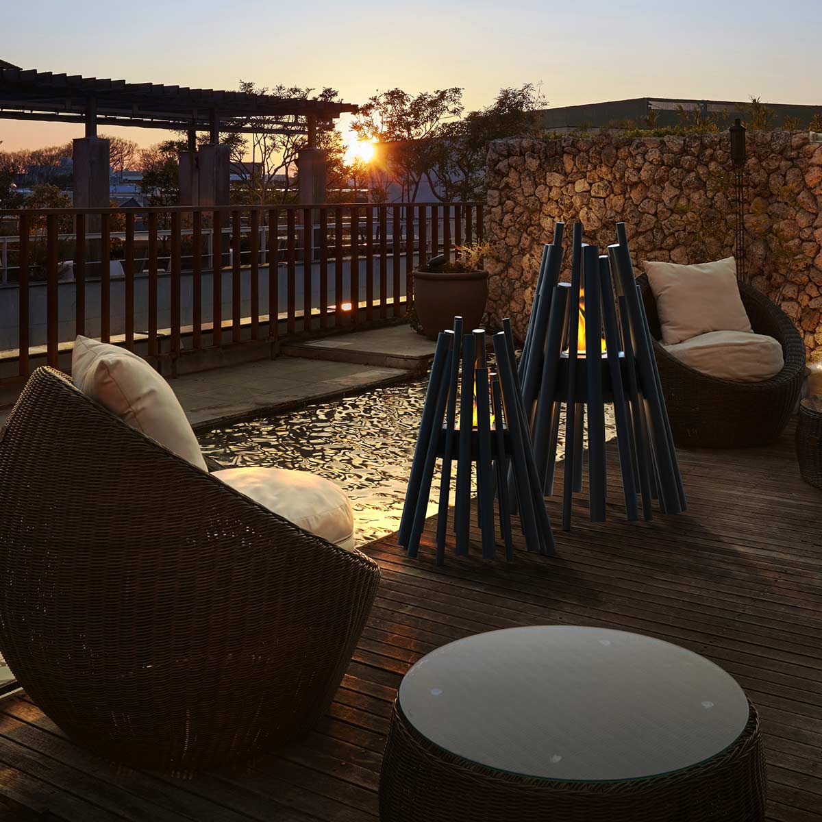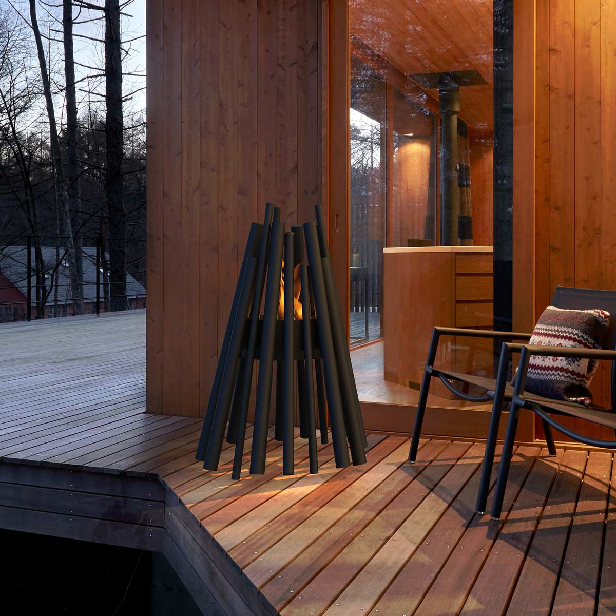 The Stix 8 Portable Fire Pit transforms the classic campfire into a striking sculptural centerpiece that elevates any indoor or outdoor setting. Inspired by the organic form of stacked firewood, its vertical stainless-steel rods create a dramatic architectural silhouette while producing a warm, inviting flame. The Stix 8 offers a clean-burning, smoke-free bioethanol flame—making it a beautiful and low-maintenance choice for modern living spaces.