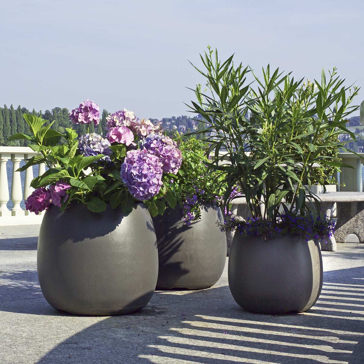 Products are made of natural, durable, recyclable, lightweight fiber cement. Manufactured in Switzerland. Each product is hand formed and signed by individual artisans. Modern design in a timeless and enduring material. These outdoor pieces possess an exceptional strength-to-weight ratio, making them suitable for a wide range of environments‚ from weight-restricted roof terraces to interiors, to public spaces. Even the largest sizes are easy to handle.