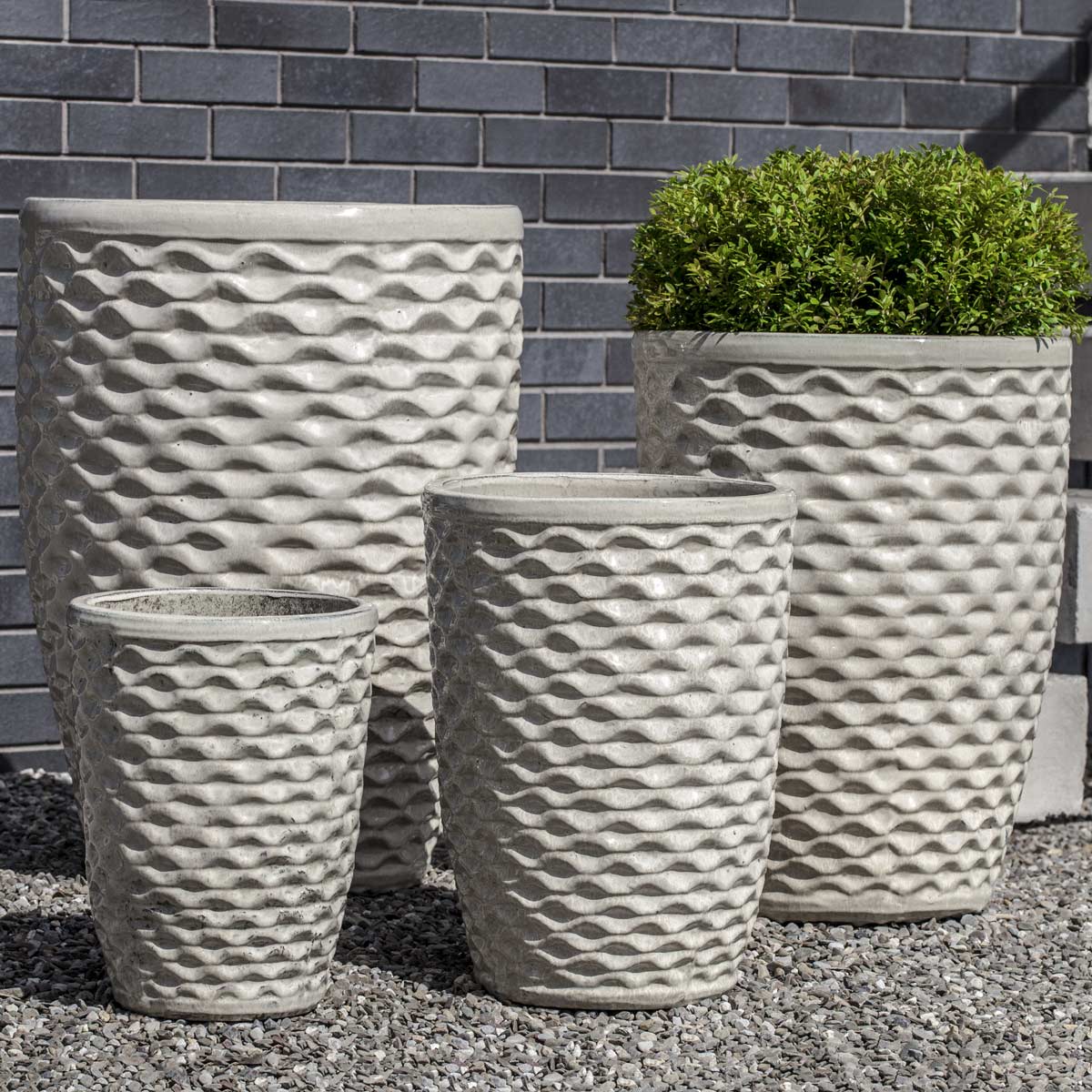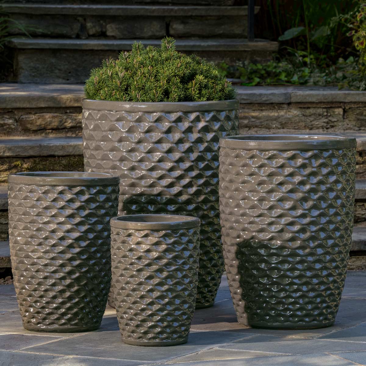 Available as a set of four, the Tall Honeycomb Planters feature an organic-inspired texture to add visual interest and depth to your garden space. These handcrafted pottery containers come in several contemporary glaze finishes and include a drainage hole. Also see the low Honeycomb Planter set.