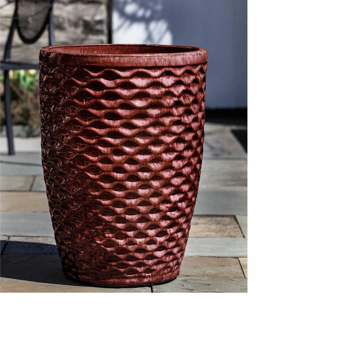The artisanal process and traditional kilns used to manufacture our handmade and hand-glazed containers create planters of unique beauty and character. This traditional craftsmanship offers a rich variety of textures, colors and finishes which will enhance any contemporary or traditional design project. Additionally, most of our outdoor glazed pottery can be used in the design of custom water features. For quality control, these natural clay planters are rigorously tested in freeze-thaw conditions. Our Glazed and Terra Cotta pottery is appropriate for use indoors and outdoors with proper planting and care in regions where freeze-thaw cycles exist.