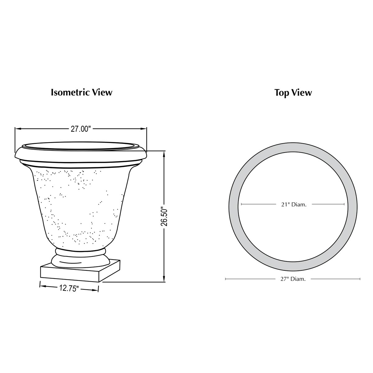 | Base Dimension | 12.75" Sq |