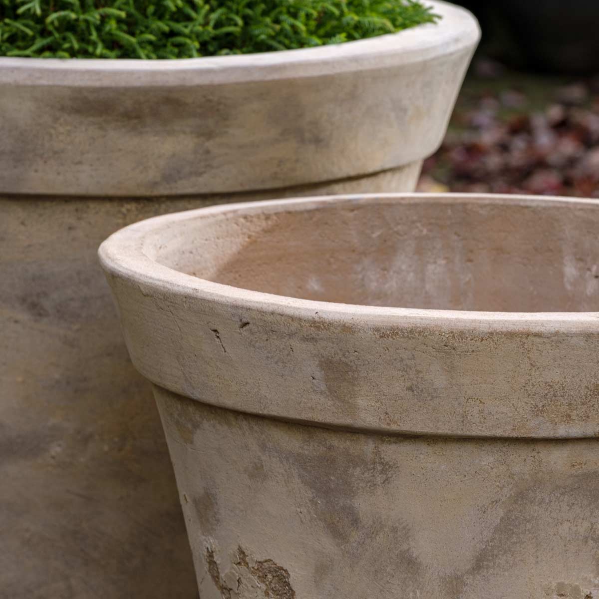 Glazed and terra cotta planters are hand-made from natural clay using traditional artisanal techniques and high-fired at temperatures between 990-1000 degrees centigrade to ensure frost resistance and durability. Glazed planters are coated with natural glazing elements that are baked onto the surface to enhance the product’s resistance to weathering.