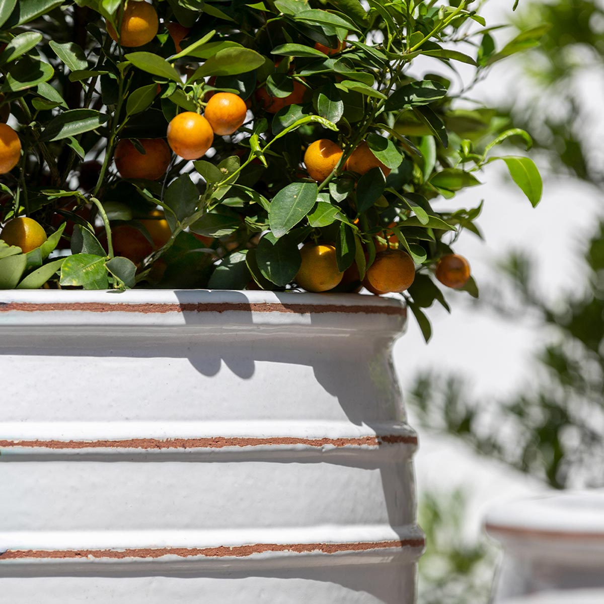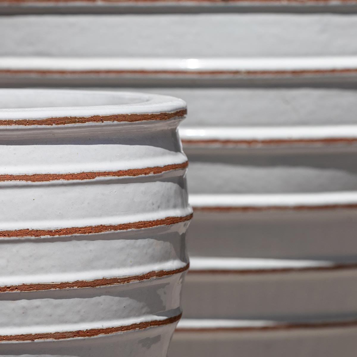 Glazed and terra cotta planters are hand-made from natural clay using traditional artisanal techniques and high-fired at temperatures between 990-1000 degrees centigrade to ensure frost resistance and durability. Glazed planters are coated with natural glazing elements that are baked onto the surface to enhance the product’s resistance to weathering.