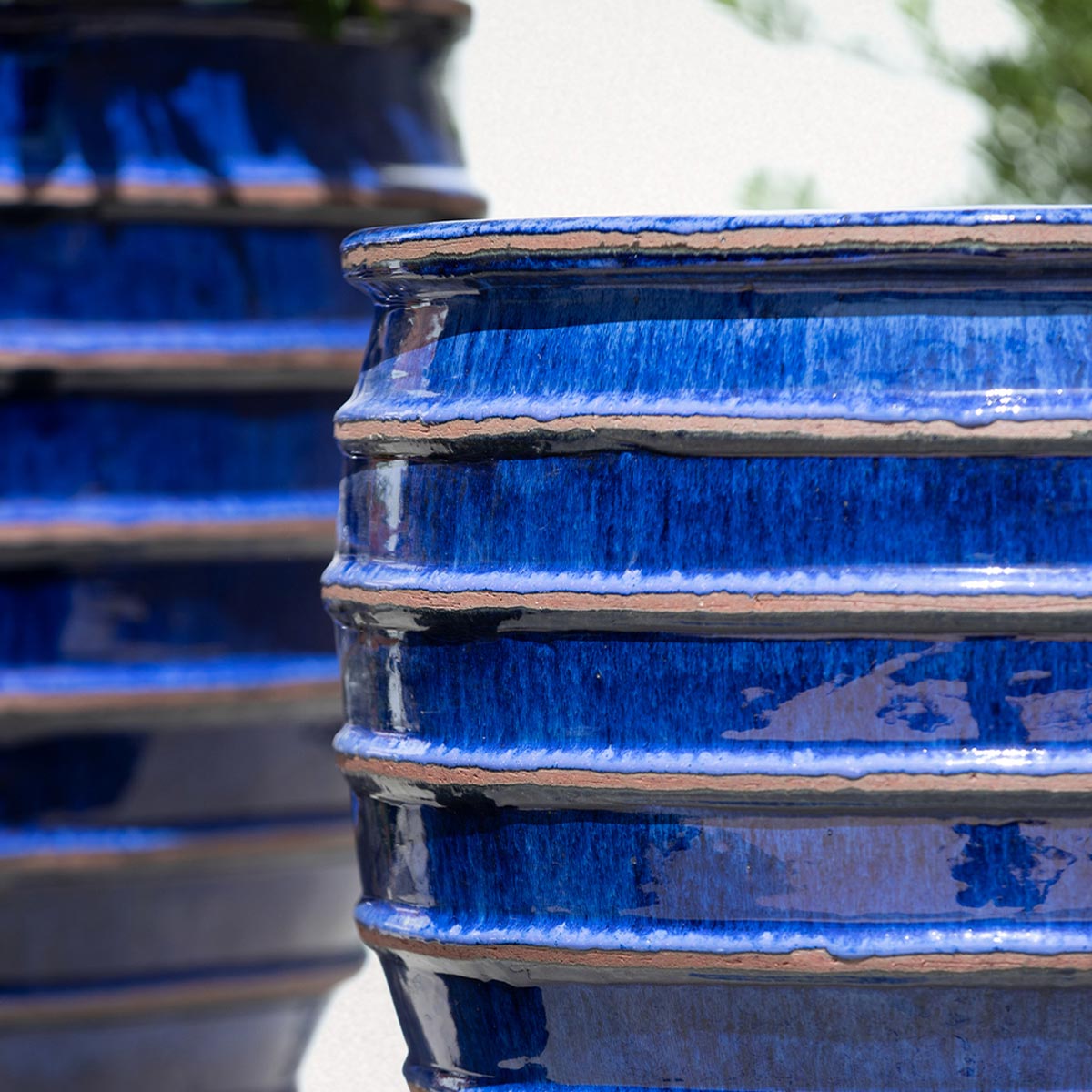 The artisanal process and traditional kilns used to manufacture our handmade and hand-glazed containers create planters of unique beauty and character. This traditional craftsmanship offers a rich variety of textures, colors and finishes which will enhance any contemporary or traditional design project. Additionally, most of our outdoor glazed pottery can be used in the design of custom water features. For quality control, these natural clay planters are rigorously tested in freeze-thaw conditions. Our Glazed and Terra Cotta pottery is appropriate for use indoors and outdoors with proper planting and care in regions where freeze-thaw cycles exist.