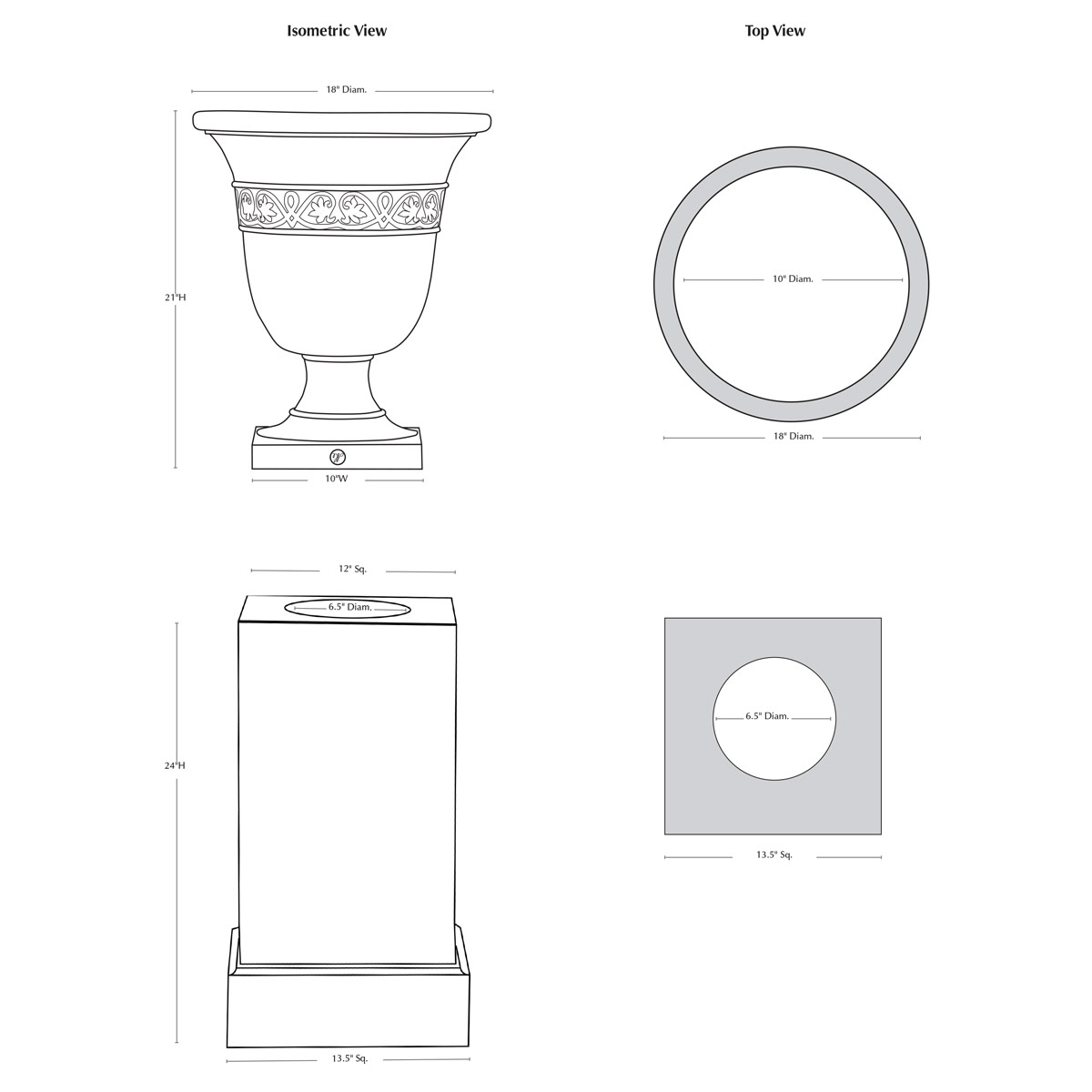 | Base Dimension | 10"Sq. |