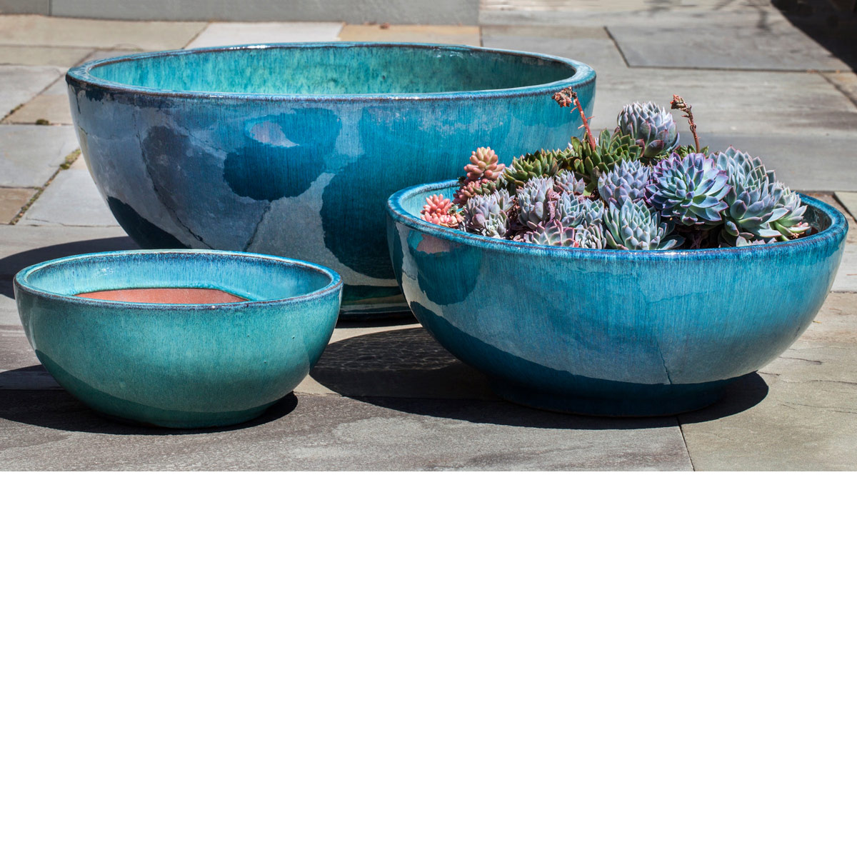 The artisanal process and traditional kilns used to manufacture our handmade and hand-glazed containers create planters of unique beauty and character. This traditional craftsmanship offers a rich variety of textures, colors and finishes which will enhance any contemporary or traditional design project. Additionally, most of our outdoor glazed pottery can be used in the design of custom water features. For quality control, these natural clay planters are rigorously tested in freeze-thaw conditions. Our Glazed and Terra Cotta pottery is appropriate for use indoors and outdoors with proper planting and care in regions where freeze-thaw cycles exist.
